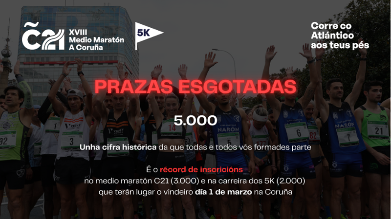 Las plazas para el próximo evento deportivo en A Coruña, el XVIII medio maratón C21 y la carrera de 5K, se han agotado tres semanas antes de la fecha de…